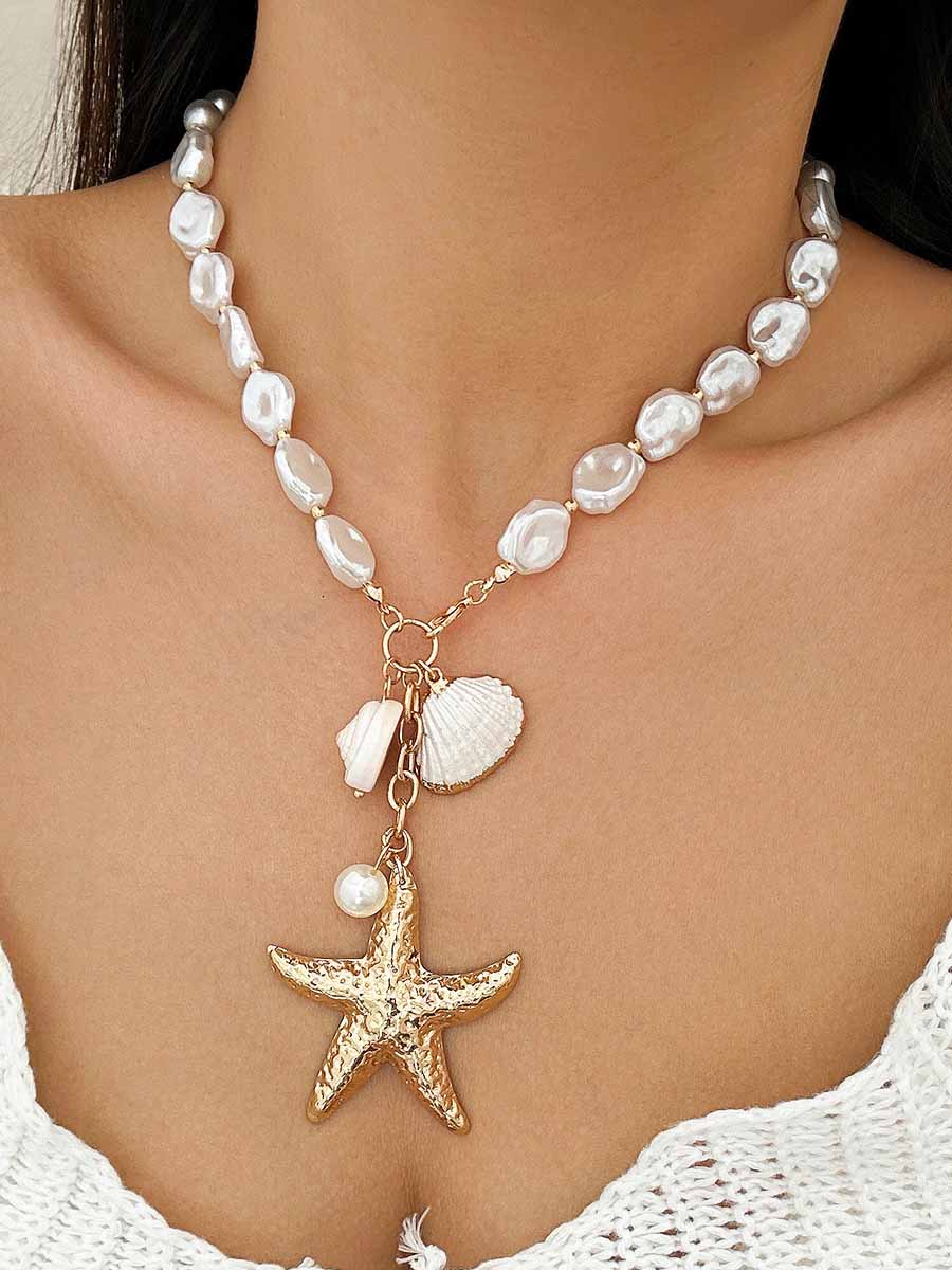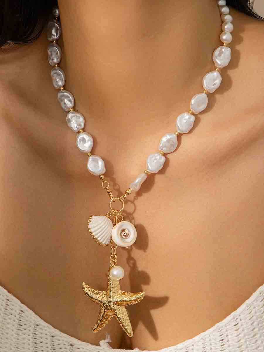 عقد الشاطئ المصنوع من لؤلؤ نجم البحر هو الإكسسوار المثالي الذي يمكن تنسيقه مع ملابس العطلة غير الرسمية