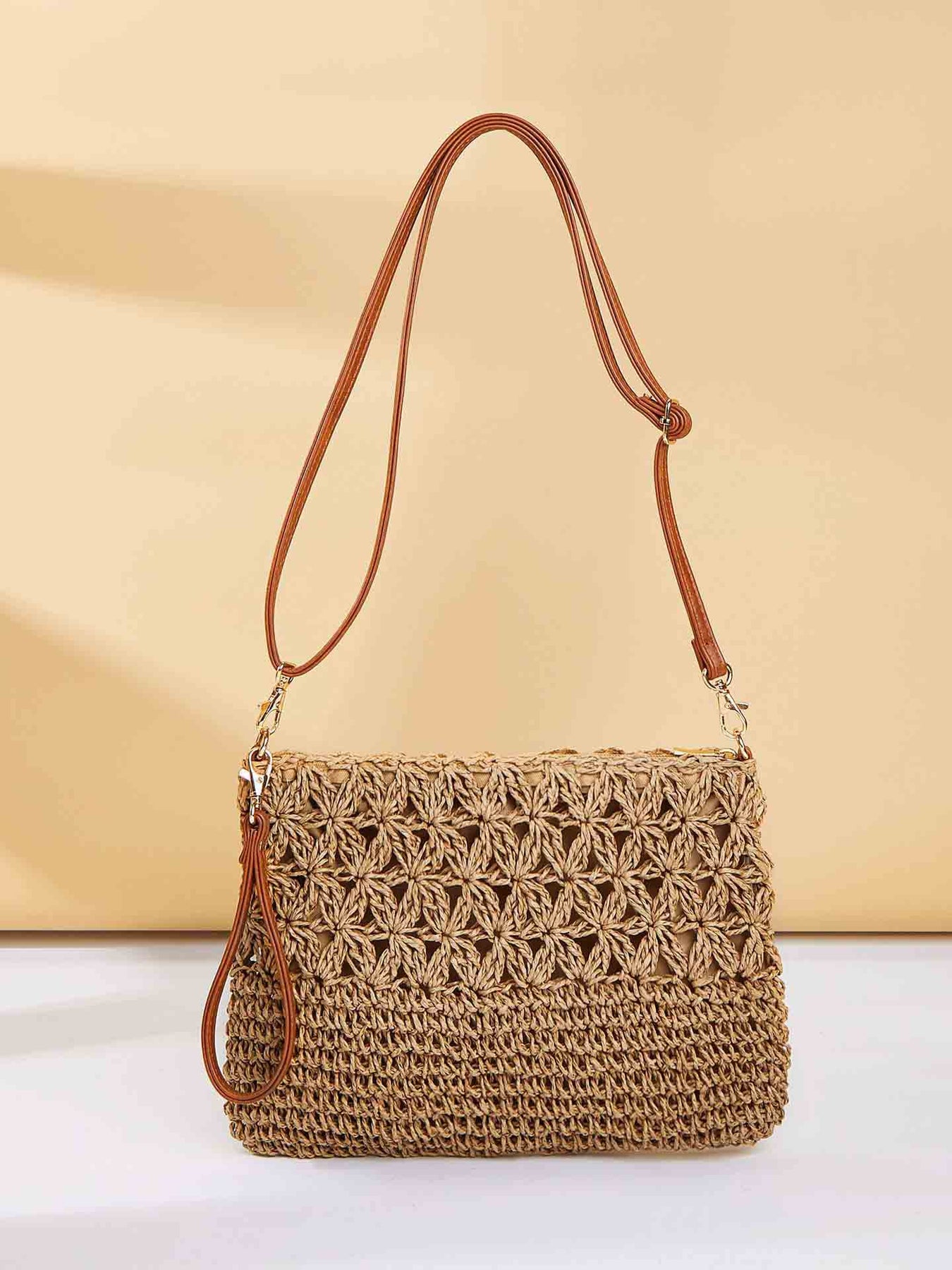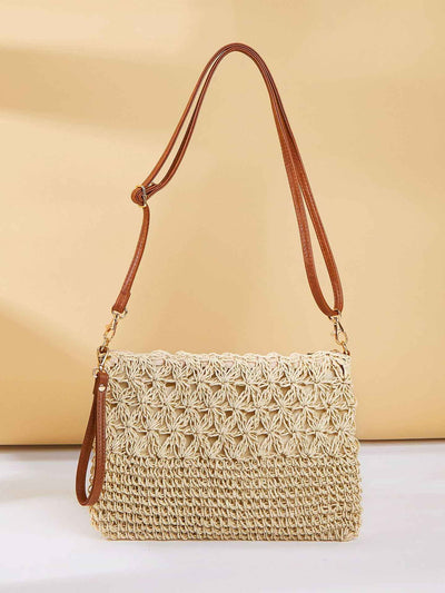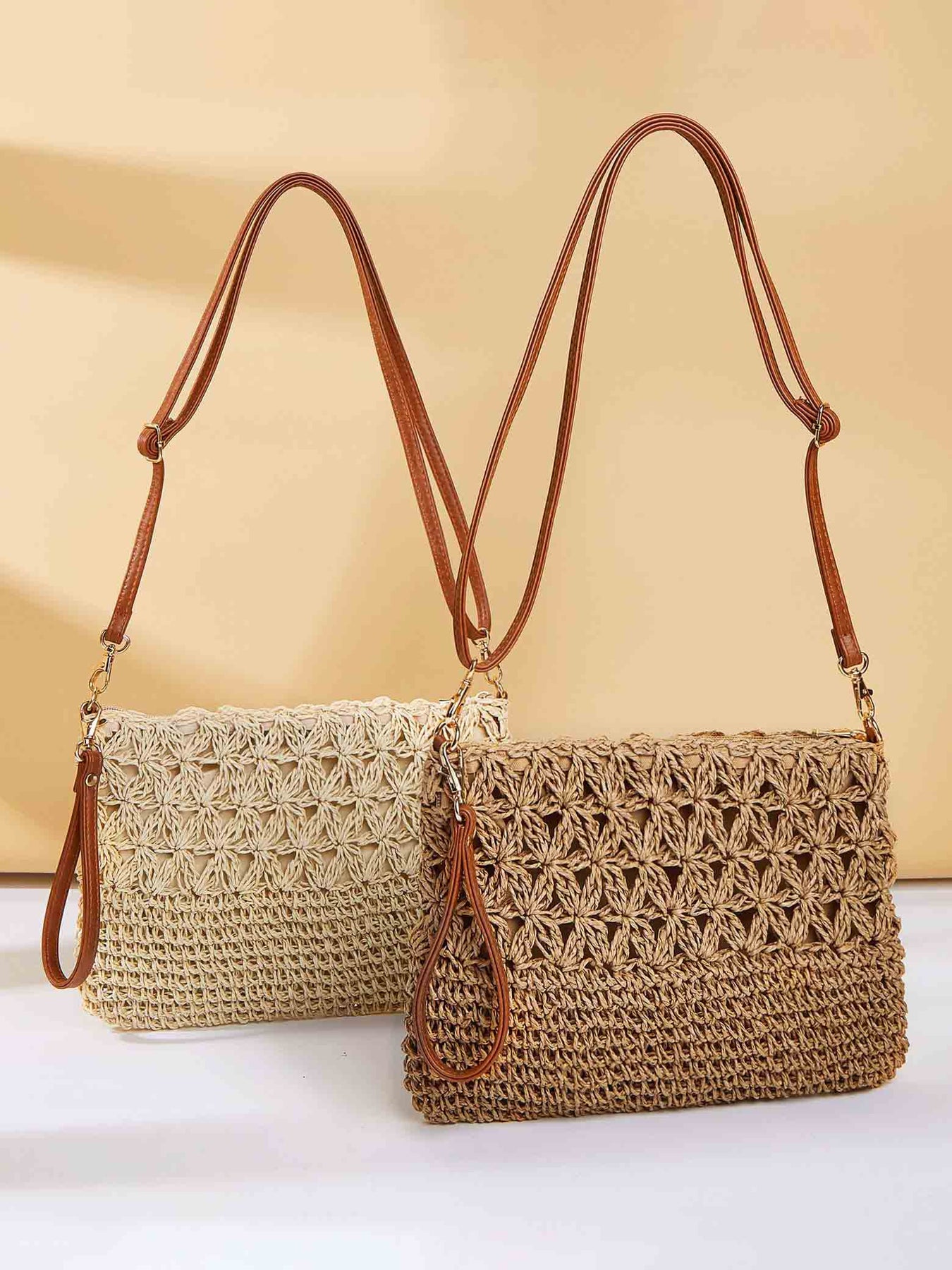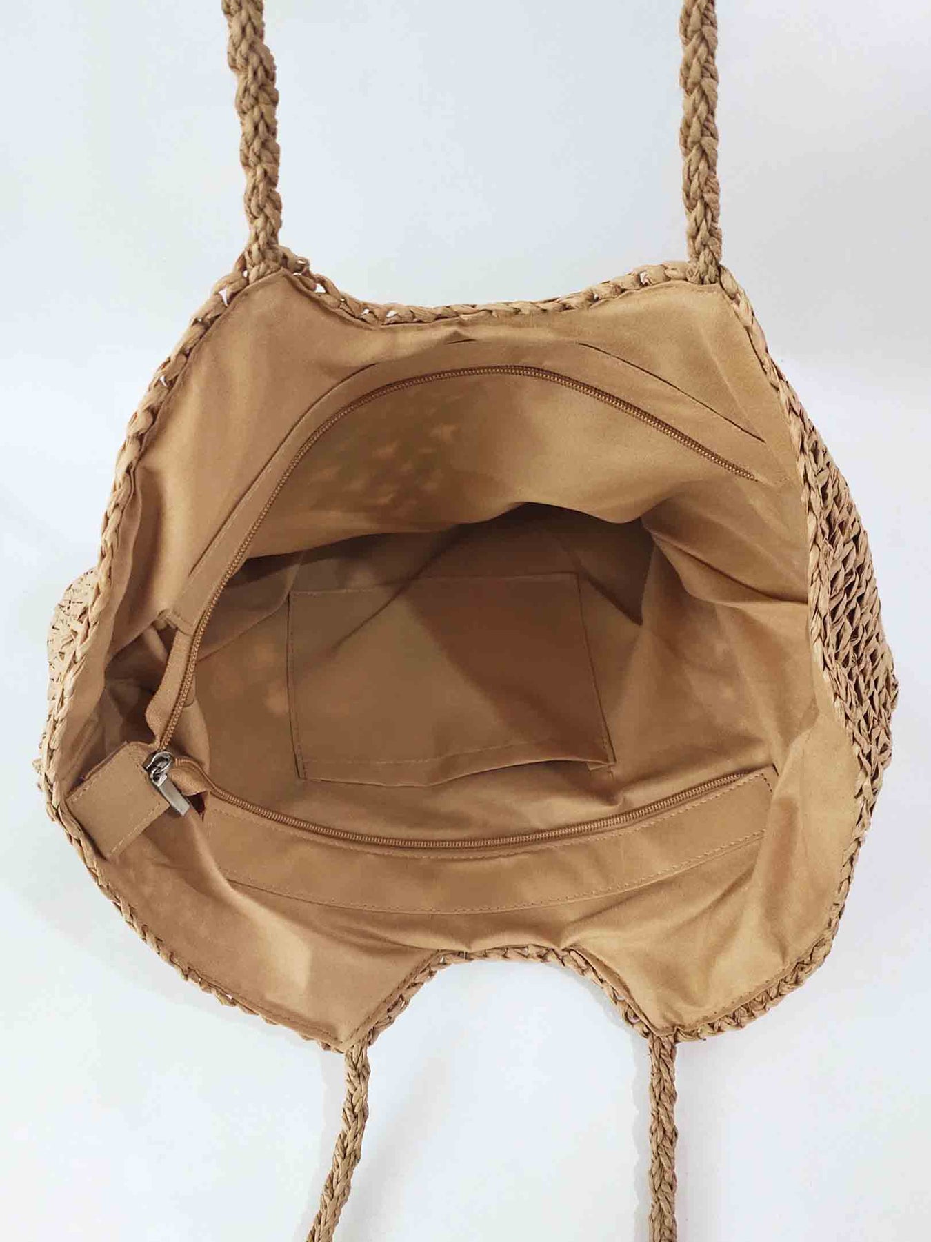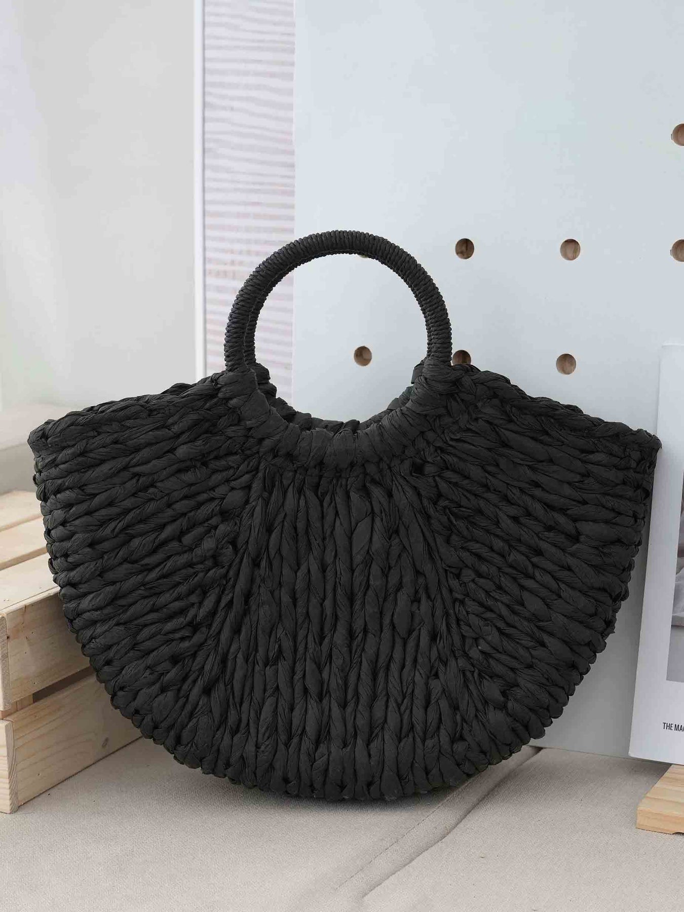 Elevate your style with our Vintage Coin Buckle Handbag, featuring woven cotton rope construction, a round rattan handle, and a chic diamond hollow pattern.
