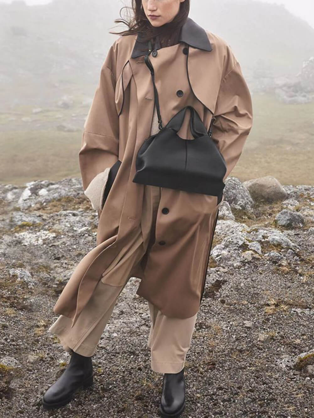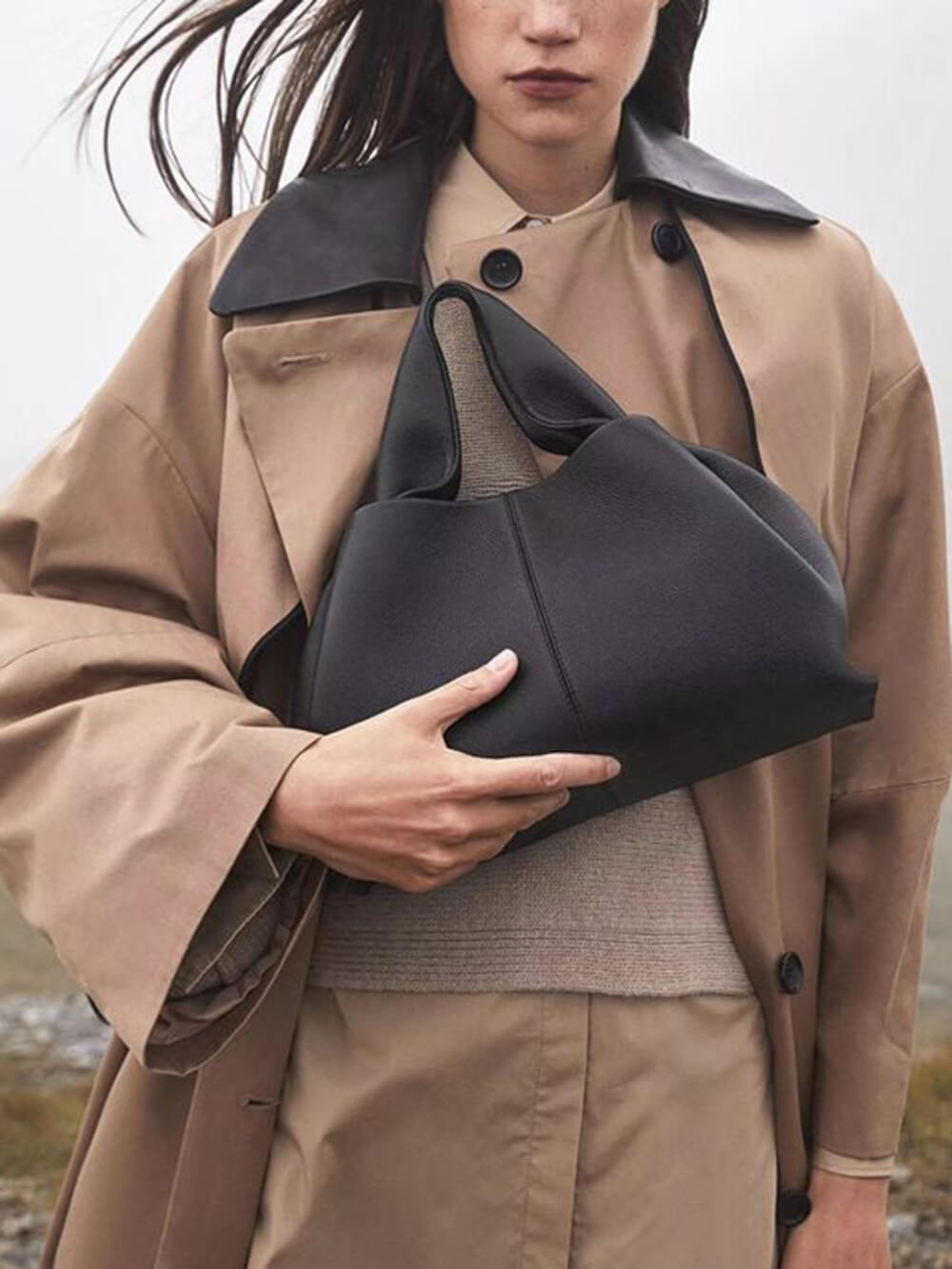 This sophisticated handbag showcases a unique coin buckle design, adding a touch of vintage flair to your ensemble.
