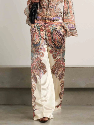 Step into retro-inspired sophistication with the Exquisite Vintage Paisley Print Wide-Leg Pants. Featuring a classic paisley pattern, these pants offer a flattering high-waist and wide-leg silhouette that elongates the figure. Crafted from soft, breathable fabric, they provide both comfort and style, perfect for making a statement at any event.