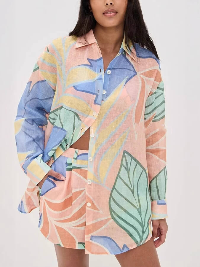 Unique Delicate Printed Loose Shirt and Shorts Set